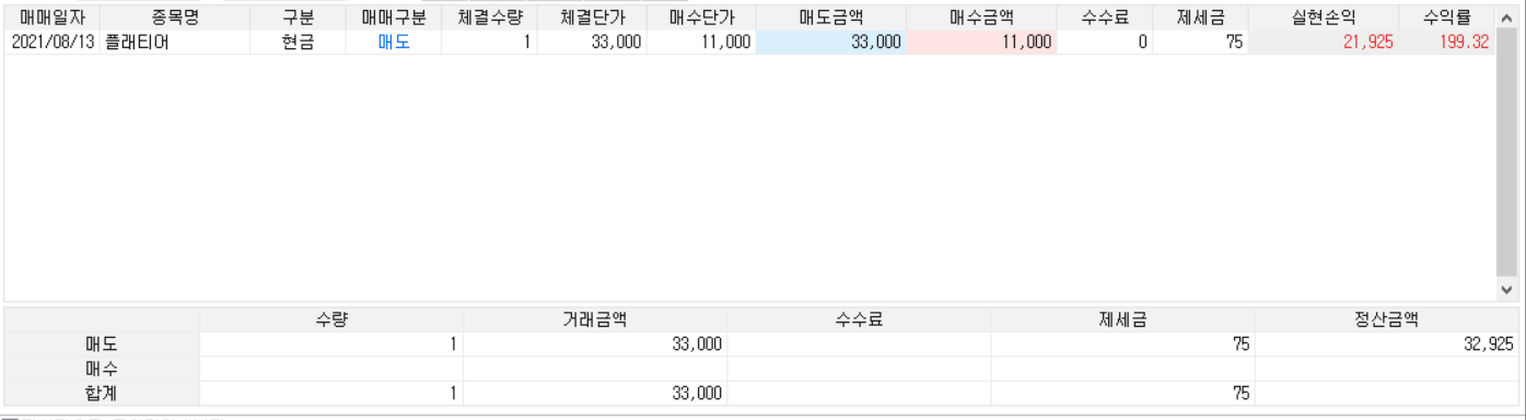 중간에 33,000원에서 매도를 하였고 수익률은 199.32%에 21,925원 수익을 보며 만족스럽게 수익실현하였습니다. ^^