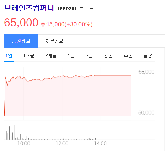 오늘은 브레인즈컴퍼니가 상장을 하였습니다. 롯데렌탈과 동시상장으로 변수가 상당히 많았지만 브레인즈의 압승으로 끝났습니다. 롯데렌탈은 시초가 59000원으로 시작하여 -3.48% 하락한 55500원으로 장을 마감하였습니다. 하지만 브레인즈컴퍼니는 시초 따상으로 시작하여 20%에서 놀다가 65000원으로 결국 따상을 달성하였습니다.