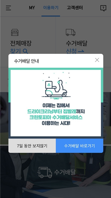 인싸가 아니라서 최근에 알게된거 같은데 크린토피아 수거배달 서비스가 있네요. 옛날사람이라 세탁물은 항상 직접 가서 맡겨야한다는 생각을 가지고 있었는데 요즘은 인터넷과 어플이 아주 잘 되어 있어서 편리하네요. 홈페이지에서는 안되고 앱을 설치하시면 됩니다.