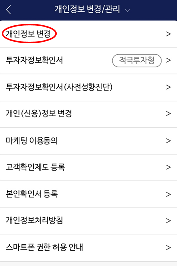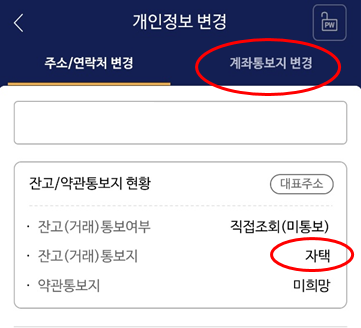메뉴 - 뱅킹/개인정보 - 계좌/개인정보관리 - ID/개인정보 - 개인정보수정