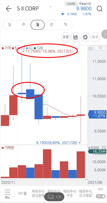당시 원달러환율은 1100원이었고 101주를 매수하였습니다. 그러나 그 이후 3월쯤에 델타변이가 나타나고 2차 대유행이 시작되었고 미국 주식시장에서 스팩 상장에 대한 제재를 가하며 급락하였습니다. 10달러로 제자리 찾아가는 듯하였으나 9달러대로 떨어졌고 어차피 스팩은 2년후에 10.2달러?? 정도는 보장하기에 다시 저가매수가 몰리며 9달러를 횡보하였습니다.(참고로 한국 스팩은 상장기한이 3년입니다.)