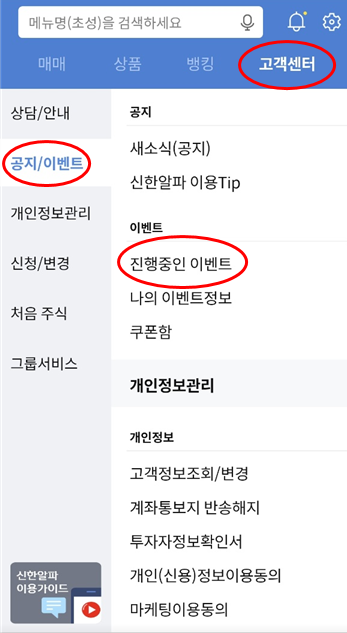 고객센터 - 공지/이벤트 - 진행중인 이벤트를 클릭합니다.