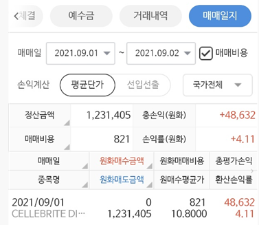 수익은 48,632원으로 그리 크지않지만 지난 1월 매수한 스팩들을 한 개씩 씨앗을 거두는 과정이라서 원금회복 정도되면 환차익 보고 거둘 생각입니다. 실제로 CLBT는 2.01% 손실이지만 환차손익으로 4.11% 수익 구간으로 된걸보니 환차손이 정말 무서운거 같아요.