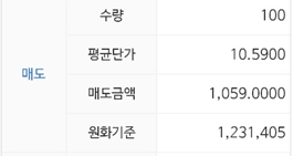 수량은 100주였고 평균 단가는 정확하게 10.59달러입니다.