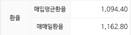 매입가는 1,094.4 달러인데 매도일 기준 환율은 1,162.8원으로 68.4 달러 환차익을 보았네요.