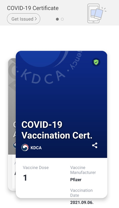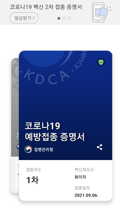 메인화면으로 가니 COVID-19 Vaccination Certificate로 나오고 KDCA 질병관리청도 영어로 나오네요. Vaccine Dose 접종차수는 1, Vaccine Manufactuere 제조사는 Pfizer 이며 Vaccination Date 는 이상하게 조금 아래로 삑??사리가 나있습니다. 하지만 문제가 되지는 않습니다. 이 영문확인서로 백신접종 확인시켜주면서 보여주면되고 2차까지 맞아야 확실한 출입이 가능하시 참고바랍니다.