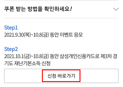 그리고 스텝 2단계로 "신청 바로가기"를 눌러주세요.
