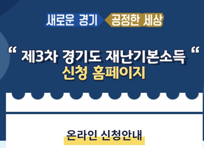 온라인 신청안내 화면인데 2021년 6월 30일 24시 기준 경기도민이어야 대상자가 됩니다. 2003년 1월 1일 이후 출생 미성년자는 세대주인 부나 모가 합산 신청합니다. 그리고 경기지역화폐나 신용, 체크카드로 신청이 가능합니다.