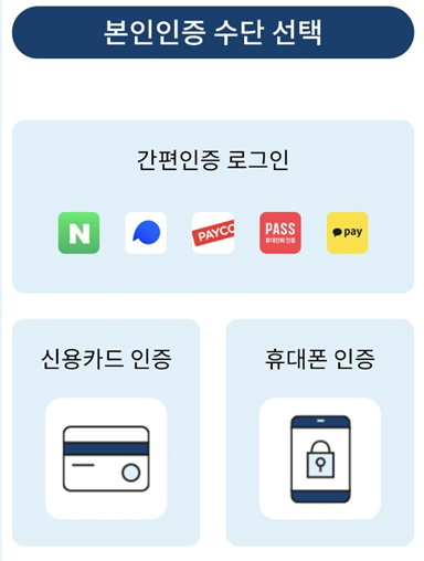 다음은 본인인증 수단 선택화면인데 3가지중에 선택하시면 됩니다.