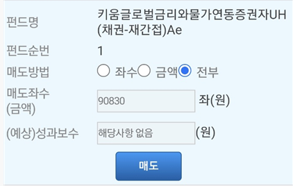 매도신청 팝업이 뜨면서 매도 되었고 몇일후에 인출을 하려고 합니다. 펀드 일반 매도 가능시간은 평일 9시 ~ 17시이며 예약 매도는 평일 0시 ~ 9시, 17시 ~ 24시이며 토요일/일요일/공휴일은 0시 ~ 24시입니다. 상기 이벤트를 이용해 남는 잔액이 있으면 부담없이 1달 투자해 10% 수익 보시기를 바라며 도움되는 내용이길 바래봅니다.