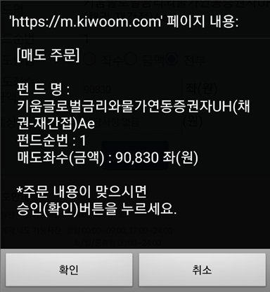매도 주문을 확인하는 창이 뜨는데 맞으면 확인을 눌러주세요.