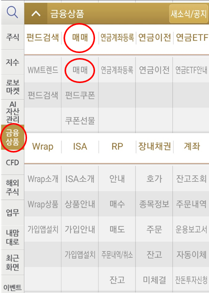 금융상품 - 매매 - 매매를 눌러주십시요.