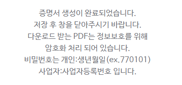 암호화 처리되어있는 pdf 파일이며 비밀번호는 개인 생년월일이며 사업자는 사업자등록번호입니다.