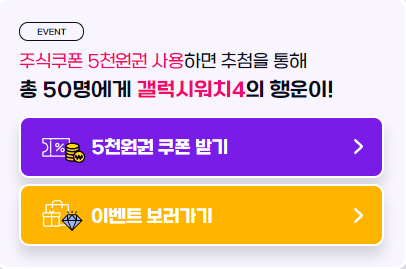 추가로 쿠폰을 이용해서 매수한 고객중 추첨을 통해 총 50명에게 갤럭시 워치4를 준다고 하니 일석이조의 쿠폰혜택이네요.