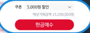 현금 매수에 쿠폰 5천원이 할인된 것을 확인하고 매수하면 됩니다.