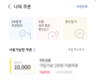 kb증권 마이쿠폰함에 이렇게 5천원 할인쿠폰이 발급되었습니다. 할인쿠폰을 잘 사용해서 매도하고 쿠폰으로 수익 거두시는데 도움되시기를 바랍니다.