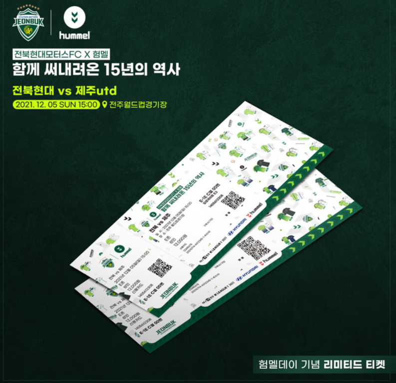 험멜은 덴마크에 본사를 두고있는데 대원 이노스 주식회사가 라이센스를 가지고 있습니다. 경남, 수원, 울산 현대의 스폰까지 같이하면서 국내 축구팬들에게는 너무나 잘 알려져있고 강팀은 험멜이다라는 인식도 있습니다. 내일 열리는 전북현대와 제주유나이티드의 K리그 2021 마지막경기는 험멜데이로 치뤄집니다. 험멜데이 기념 리미티드 티켓도 발매되었고 15년의 역사의 대장정이 마무리가 되네요.